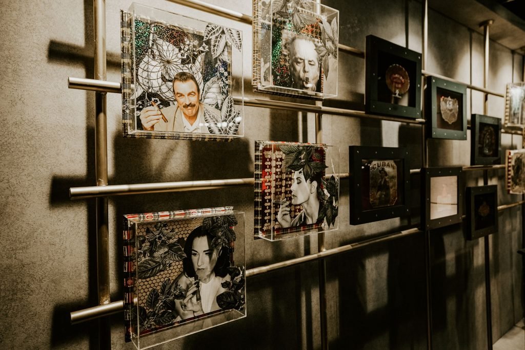 The Habanos Cigar Lounge showcased one-of-a-kind art made and specially curated by Mixed media Artist, Ayesha. She believes “Cigars are an art form in themselves with each one hand rolled to perfection after a long process of curing the tobacco leaf. This collection of cigar art is similar in that each piece is one of a kind and cannot be replicated even by me! The botanical illustration of the tobacco leaf, so intricate and beautiful in its different stages of curing have appeared in my pieces. Years of collections of original cigar bands a testament of how many cigars have been lit, savoured and enjoyed as appear as borders of some of this collection.”
